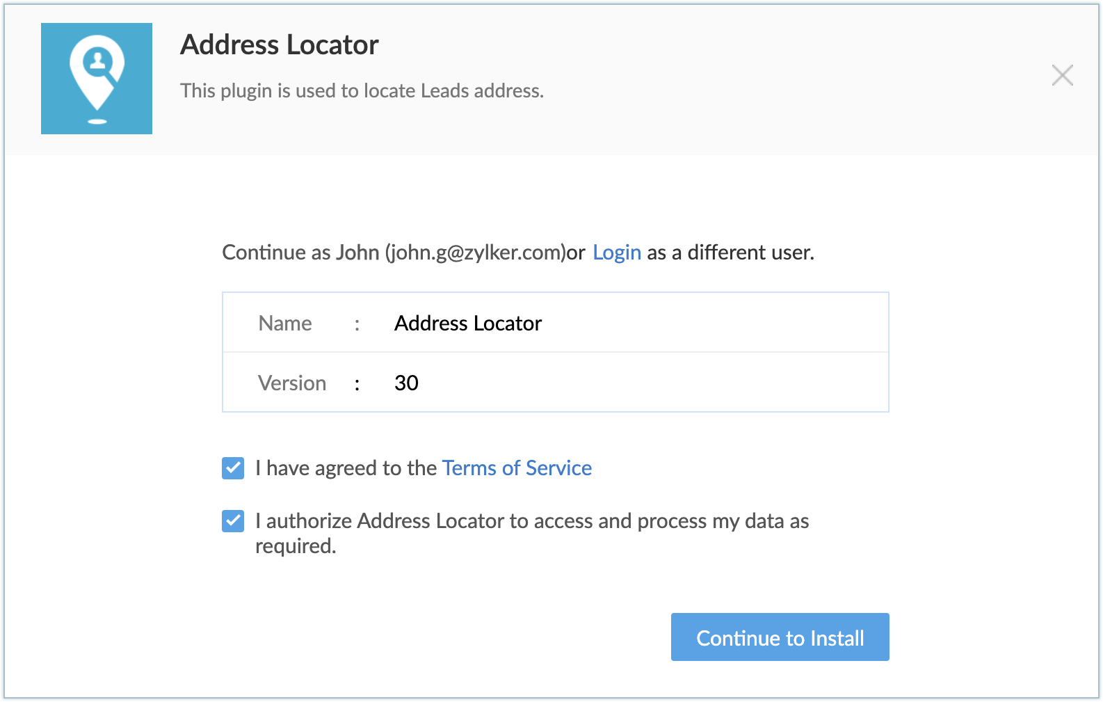 The extension can be installed either from Zoho Marketplace or from your Zoho CRM account. To install the extension from Zoho CRM: