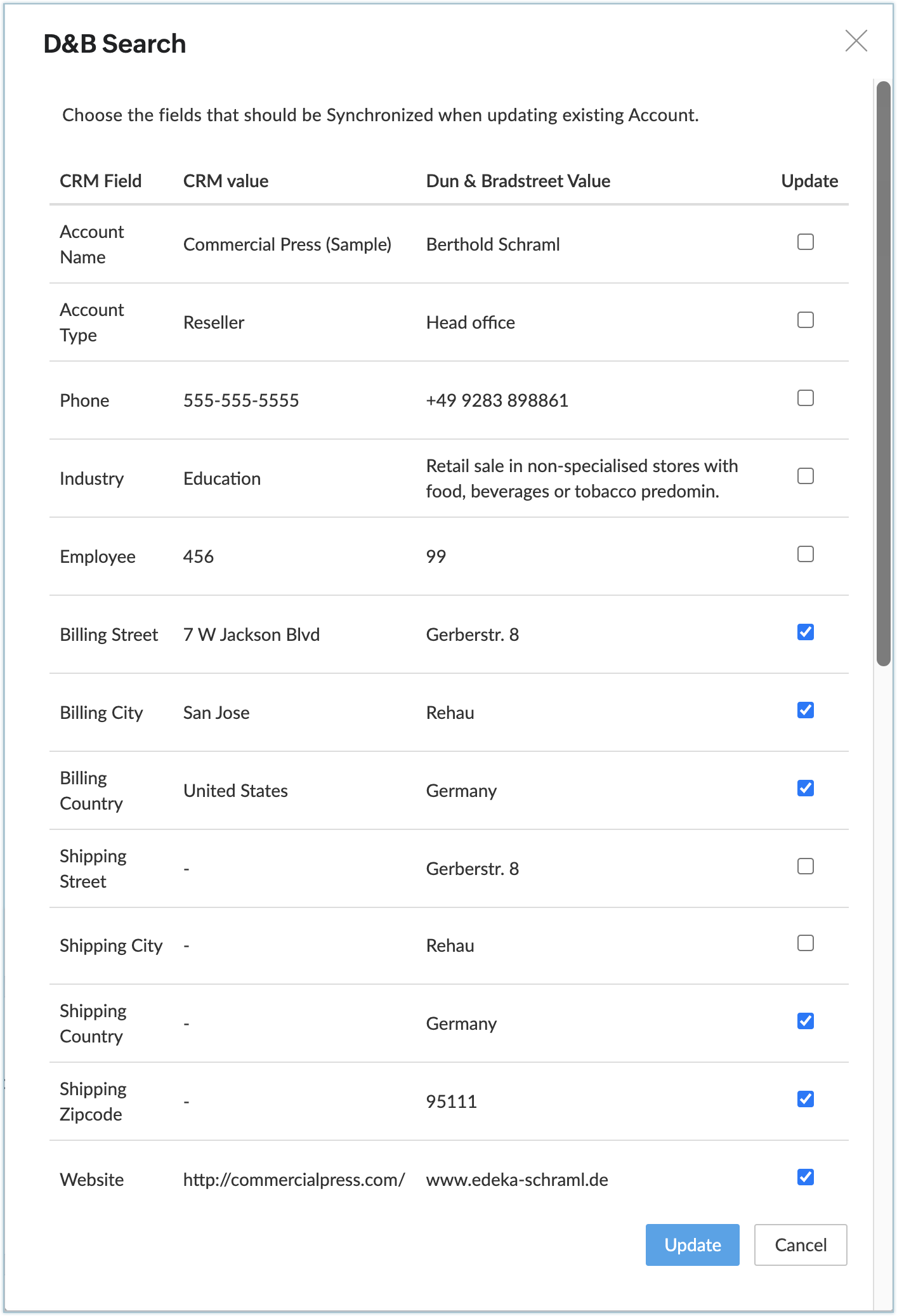 5. In the pop-up, select the desired fields to update and click Update.
