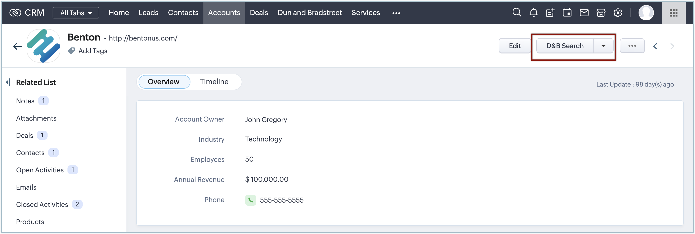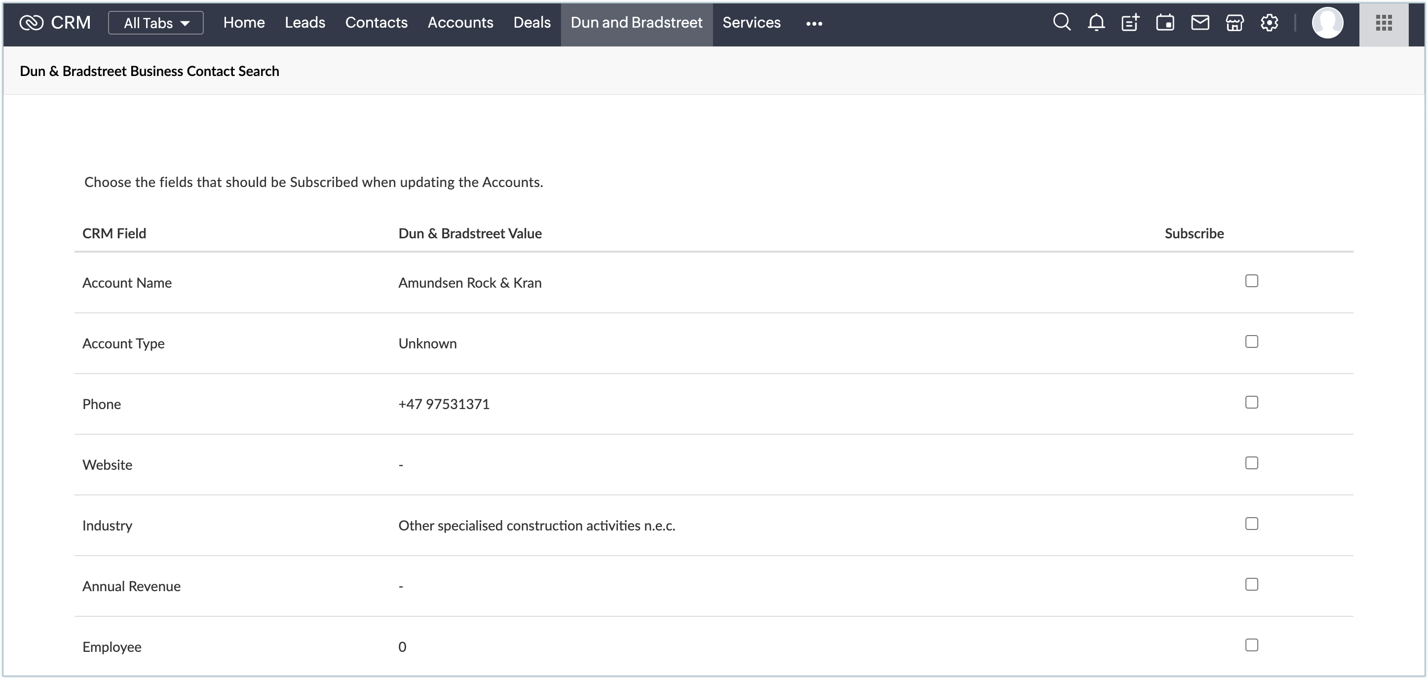 Dun and Bradstreet for Zoho CRM