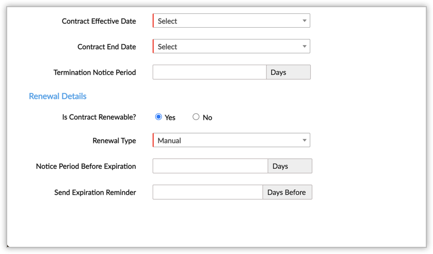 - If Yes, select the Renewal Type from the drop-down and enter the respective values.