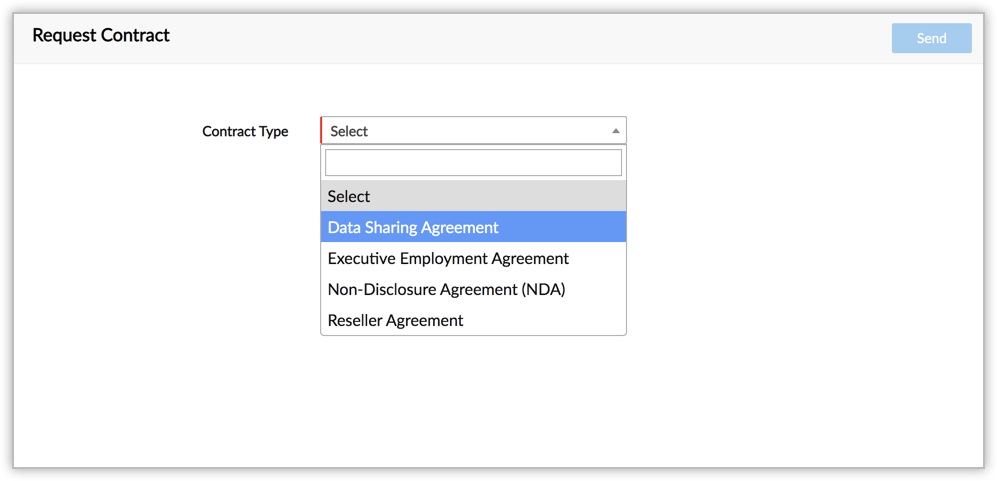 - In the Request Contract page, select the Contract Type from the drop-down.
