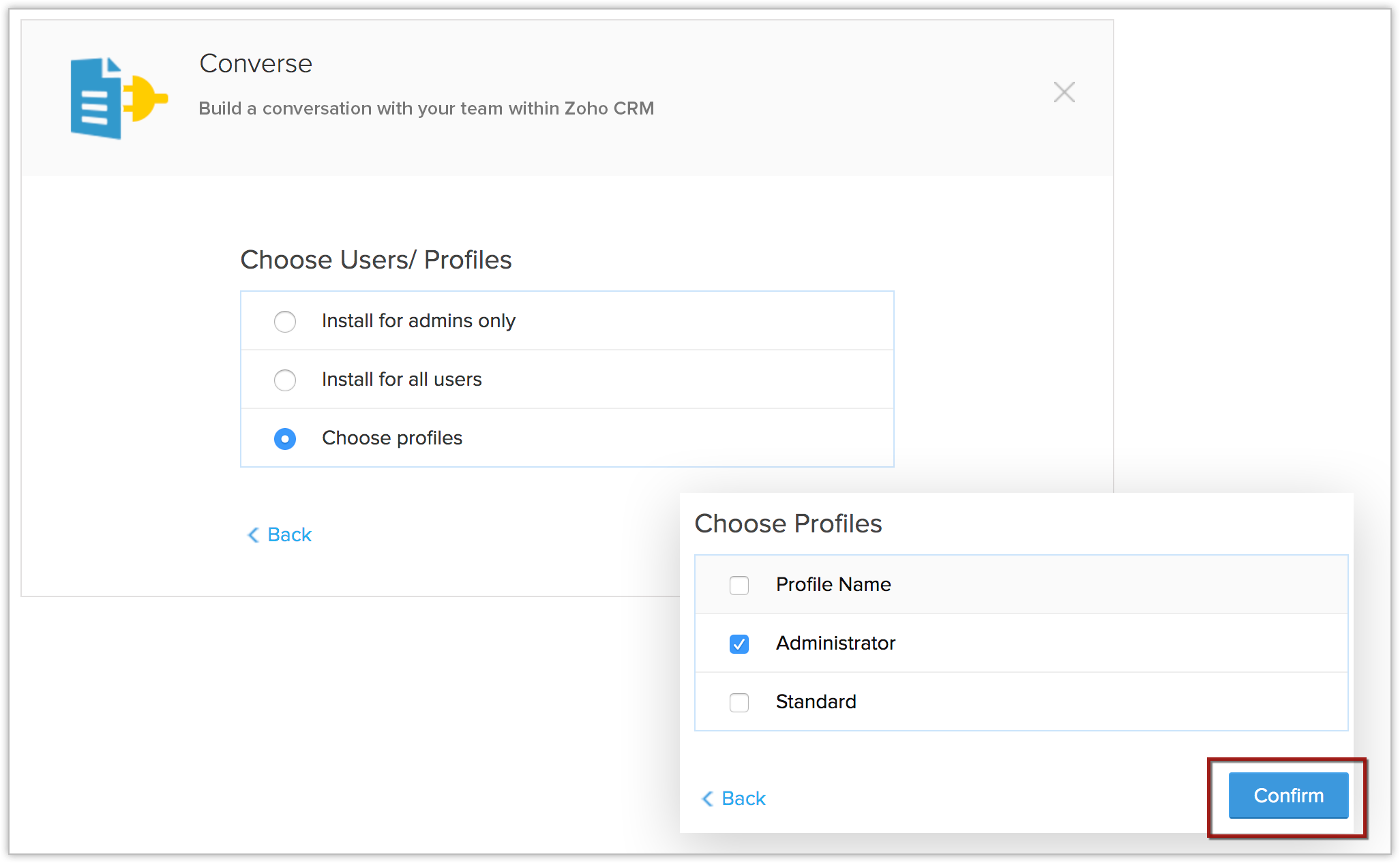 7. If you select the Choose profiles option, check the desired profiles and click Confirm.