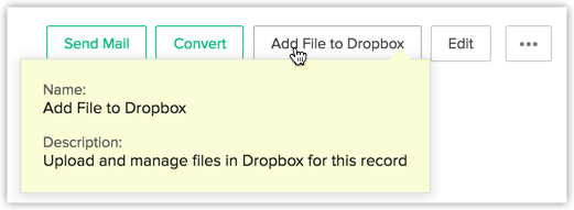Note: Please note that the Dropbox extension for Zoho CRM is available in US, IN, AU, and JP datacenters.