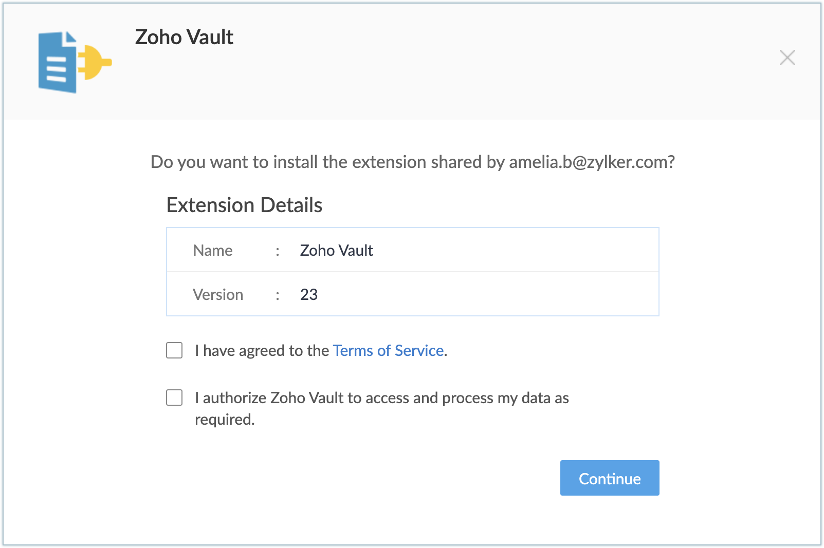 You can install the Zoho Vault extension either from the Zoho Marketplace or from within your Zoho CRM account.