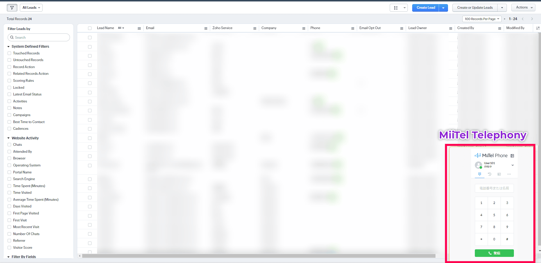 The MiiTel extension provides seamless telephony integration for Zoho CRM, enabling users to effortlessly make and receive calls directly within the CRM platform. The MiiTel telephony widget is conveniently positioned in the bottom right corner of Zoho CRM, allowing calls to be made from any module by clicking the call button next to a phone number. All call activities, both incoming and outgoing, are recorded in the Call module with comprehensive details.