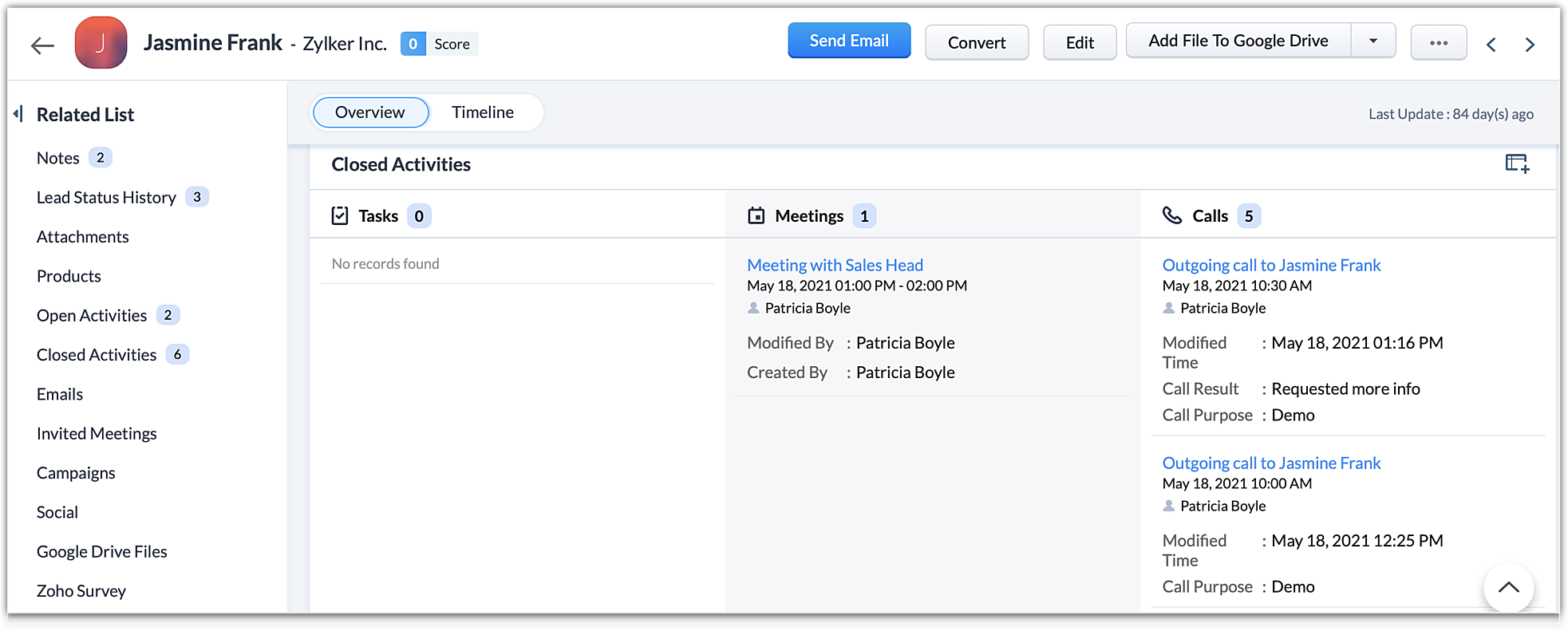 We hope that this list of frequently asked questions about 'activities' (calls, meetings and tasks) are informative. If you still have questions that haven't been addressed, please let us know here. We will be happy to discuss them with our subject matter experts and add them in the future. And please don't forget to share your rating below!Learn how to use the best tools for sales force automation and better customer engagement from Zoho's implementation specialists.
