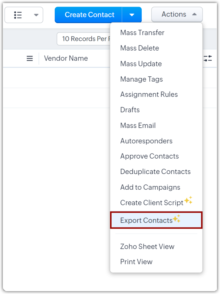 If you want to export a custom view quickly, you can initiate it from the Actions menu in a module page. To do so, follow these steps: