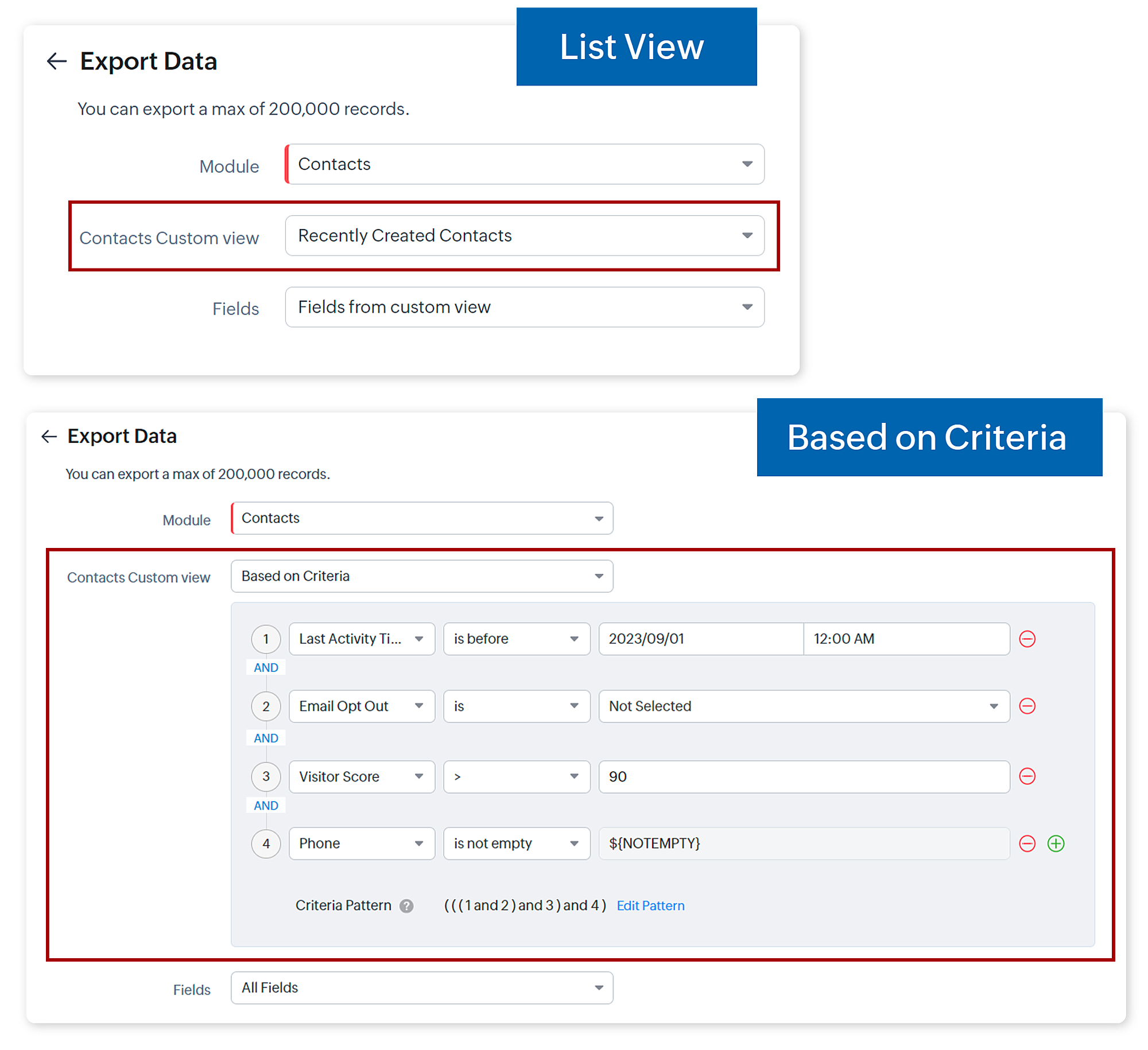 - Data minimization: Export only the necessary data. Zoho CRM allows for advanced filtering and data selection options so you can export only the specific records and fields you require. This minimizes the risk of unnecessarily exposing sensitive information.