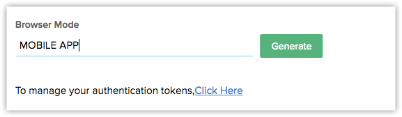 In the CRM API page, click Settings and select Authentication Token Generation. Click on the Generate button to get the Authentication Token instantly.
