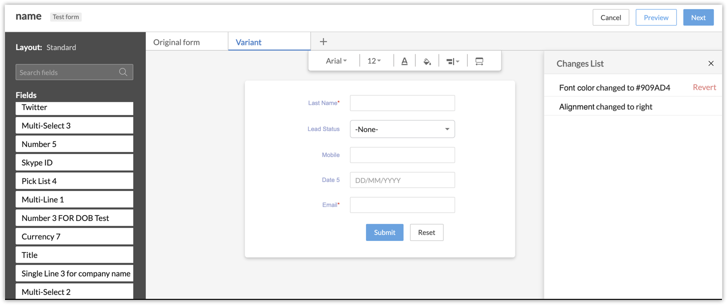 Yes, you can create different versions of the original webform by adding fields, modifying field properties, changing the call-to-action buttons, changing fonts, revising the background color of the form, and so on.