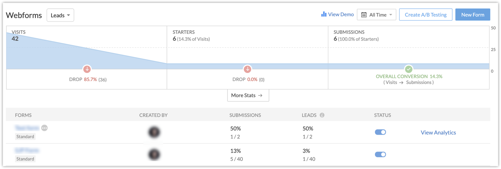 Webforms are the most commonly used method for businesses to generate leads. It is important to analyze how each webform performs so that you can take down the forms that are not performing well or make updates to enhance their performance or change the target audience to increase their reach. Analysis can also help you ensure that your forms are helping you find quality leads.