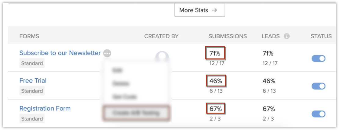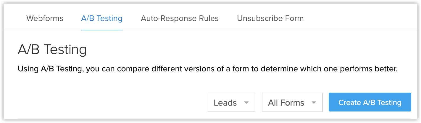 A/B testing is a methodology that allows you to compare the performance of two webforms and decide which one is performing well, that is generates more leads.