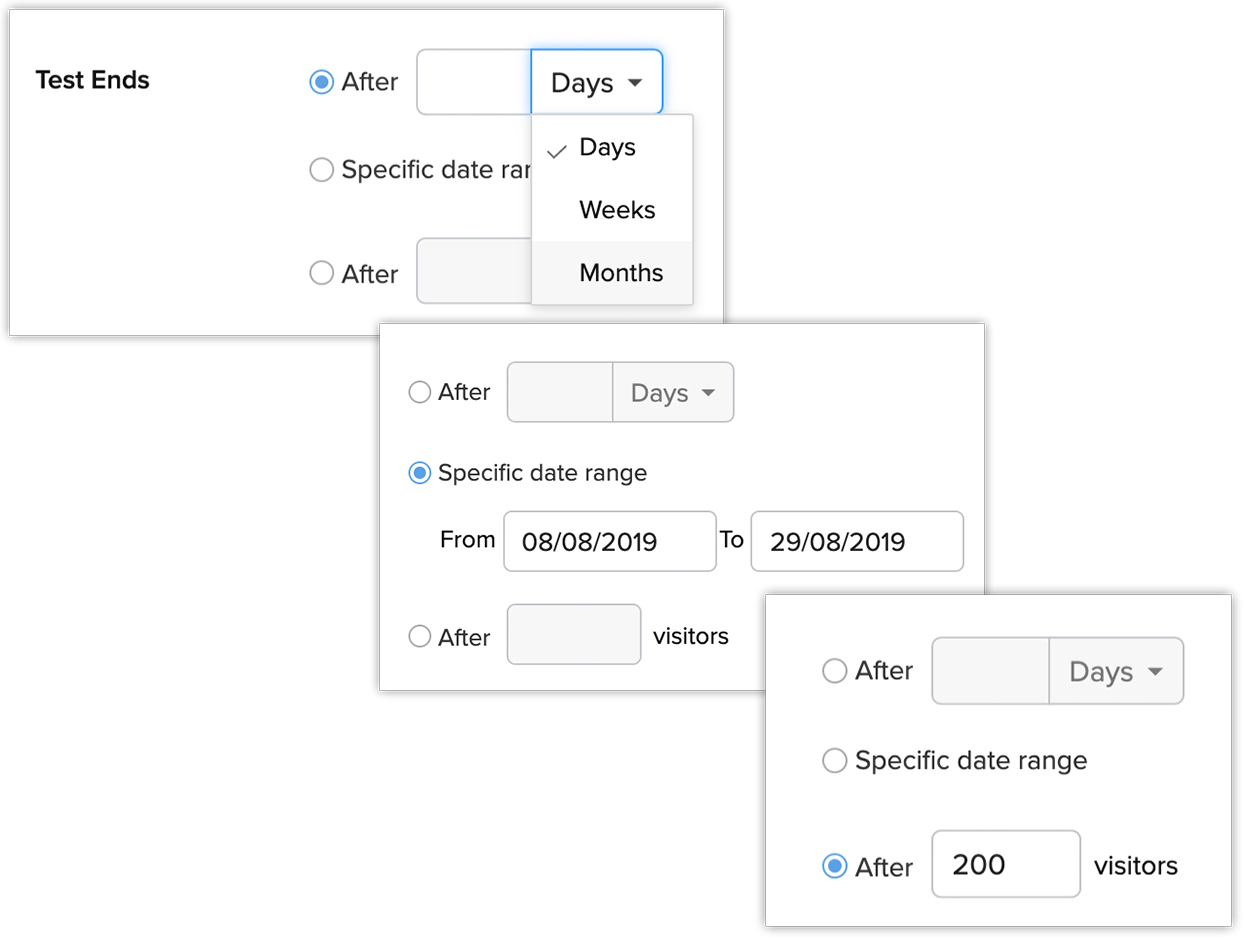 Split visitors: Specify the percentage of visitors who should view the original form and each variant. For example, 70% of the visitors will view the variant while the remaining 30% will view the original form.
