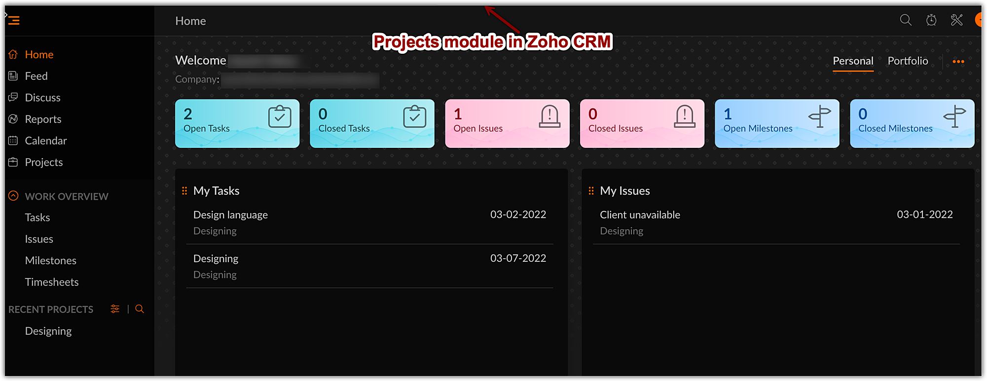 All of these tasks, plans, issues, milestones, expenses, status, and activities are reflected in Zoho CRM itself.