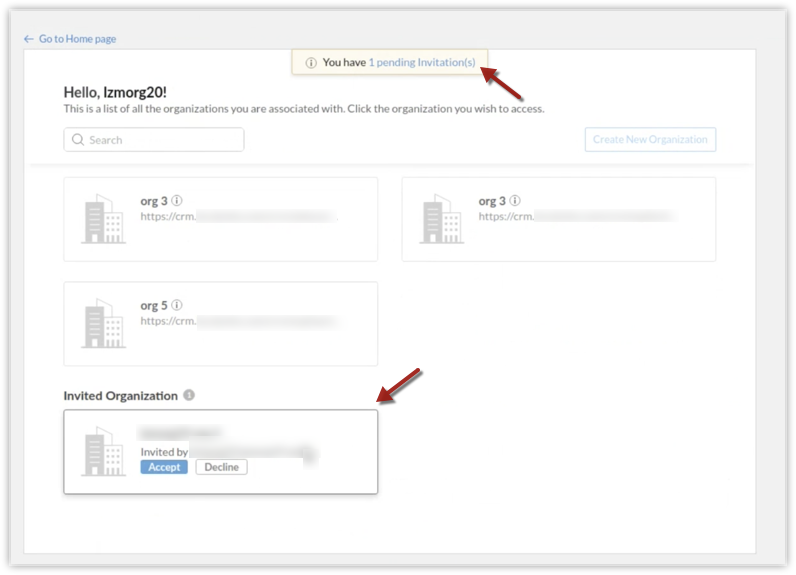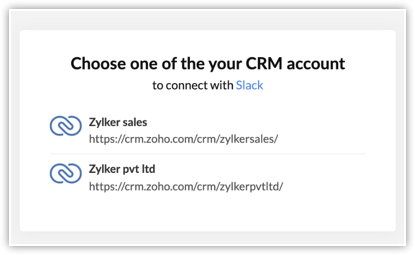 If you are using other Zoho products or any third-party applications that you want to integrate with Zoho CRM, you will be prompted to choose one of the org accounts during integration. The selected org account will be integrated with your application.