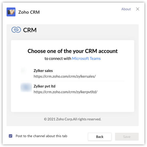 Multiple CRM org accounts can be associated with one Zoho Campaigns or Zoho Creator org and Cisco Teams.