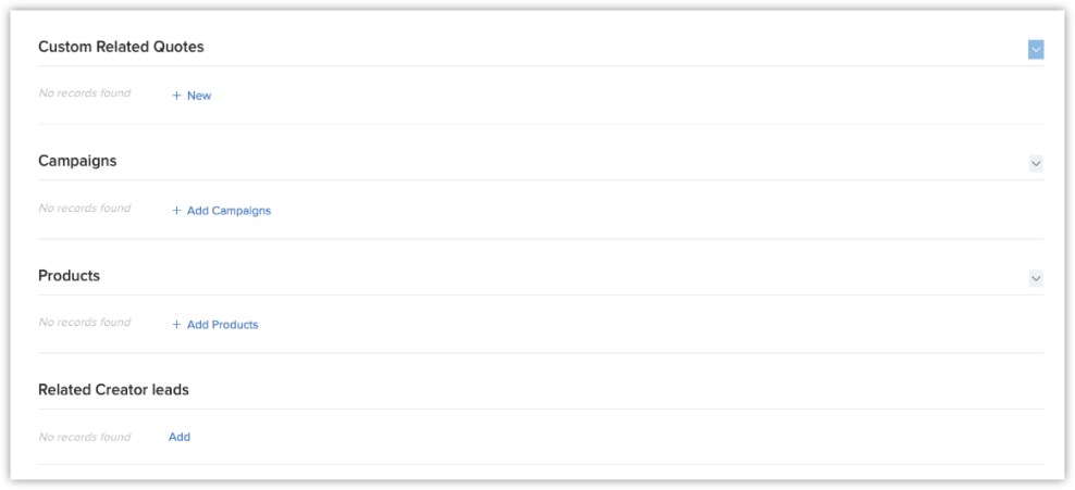Modules in Zoho CRM let you categorize, track, and maintain data belonging to various aspects of your business. They are the building blocks of CRM and are represented as tabs like Leads, Contacts, Accounts, etc.