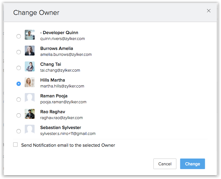 In Zoho CRM, you can share data with other users in the Free Edition by assigning individual records to different users. You can also change the Record Owner using these steps: