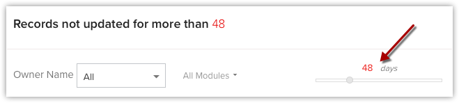 Example: You want to view the records without activities or updates for the past 48 days. You need to set the Feeds slider to 48. The records that have not been updated for more than 48 days will be listed.