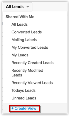 2. Move the mouse pointer over the list view drop-down and click the Create View link.