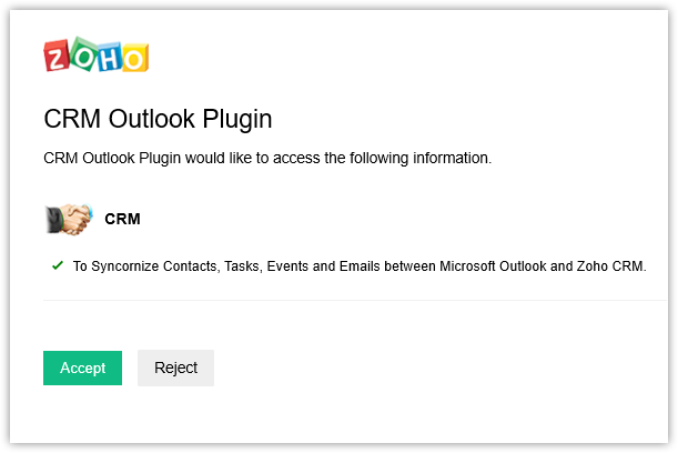 - Read the information that the CRM Outlook plugin would like to access and click Accept.