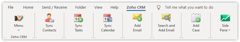 Once signed-in, all the options in the Zoho CRM Plugin for MS outlook will be enabled.