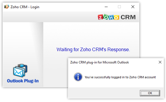 To get started, first you need to sign in to the Zoho CRM Plug-in using your Zoho CRM login credentials. You can also sign in using your Google Apps, Google, Yahoo or Facebook login credentials but with a different password.