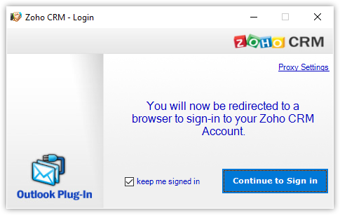 - In the Zoho CRM - Login popup, click Continue to Sign in.