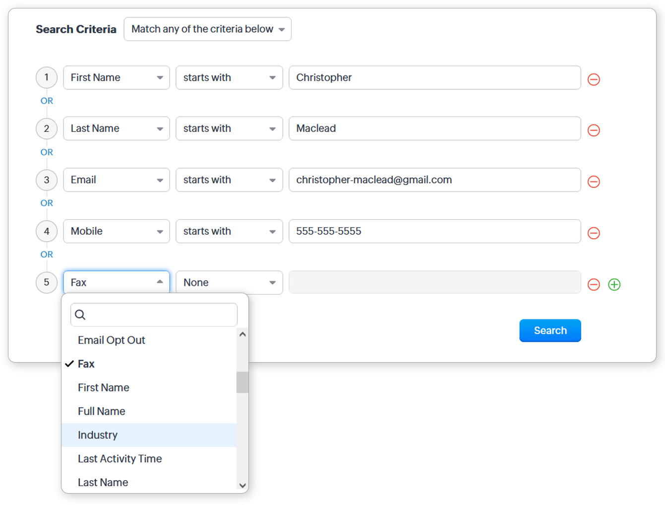 The Find & Merge Duplicates tool also allows you to enter further criteria to search for duplicates. There are six fields in which you can specify the criteria in each module. Once the duplicates have been found, you can merge them manually.