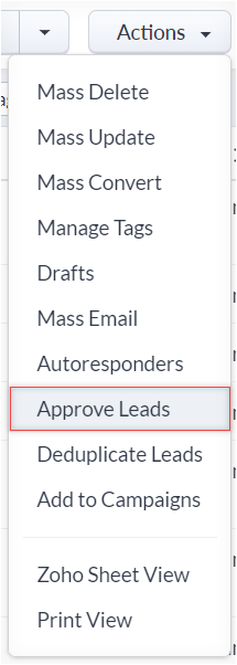 2. In the Records page, click the Actions dropdown at the top right corner and click Approve [Module].