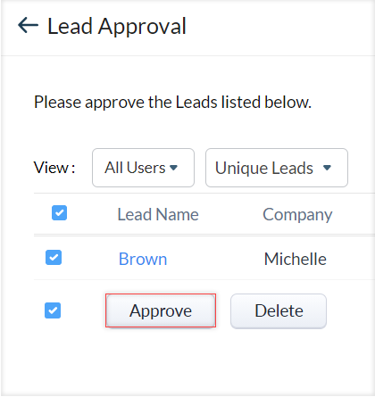 The import feature and Web forms have an option to enable manual approval of records. When this option is enabled, records imported or gathered through web forms are not added directly to the modules. They need to be approved first for other users to access the records. Records can be approved for the LeadsContactsCases or any other Custom module's records.