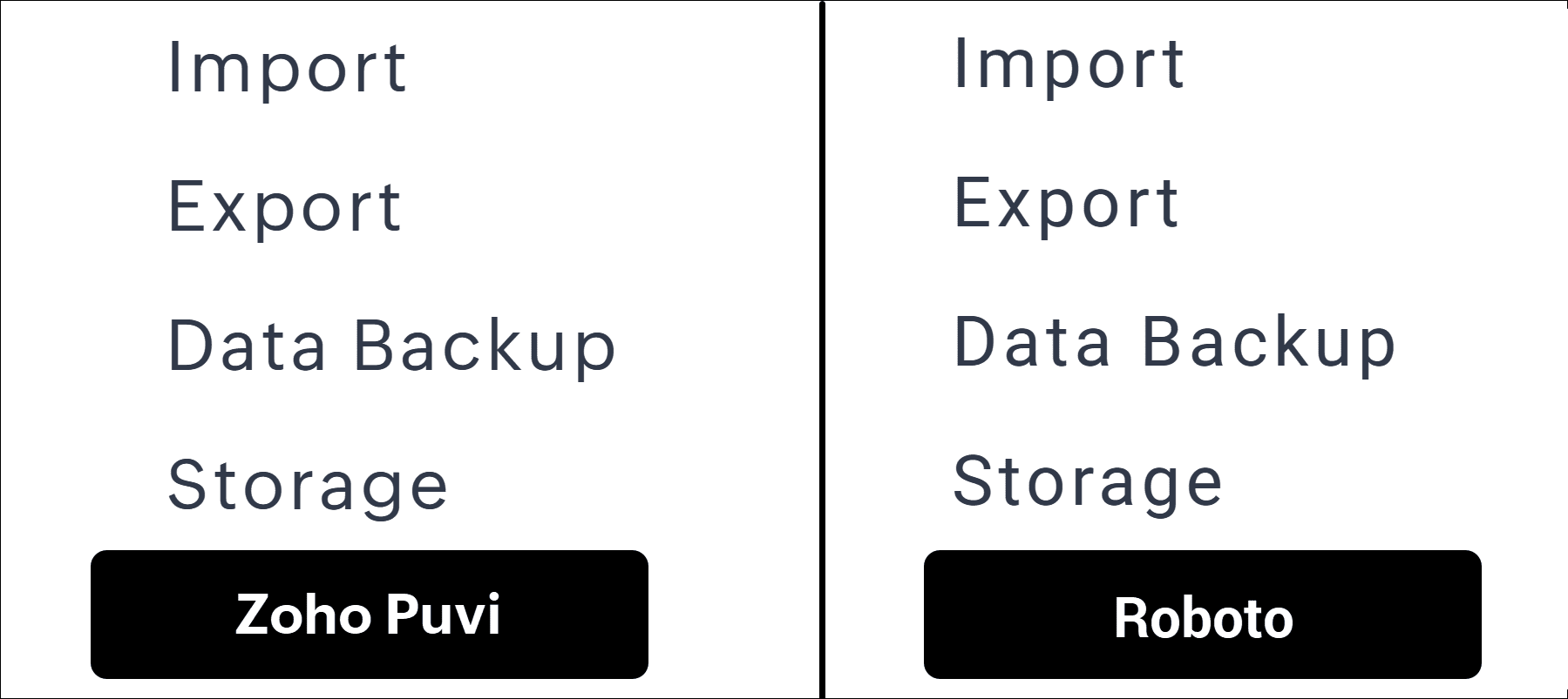 Zoho Puvi: Our very own font, designed to reflect Zoho's visual language.