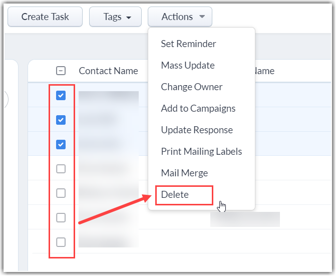 • Mass delete the records by selecting the check boxes corresponding to the records and clicking on the Delete button.