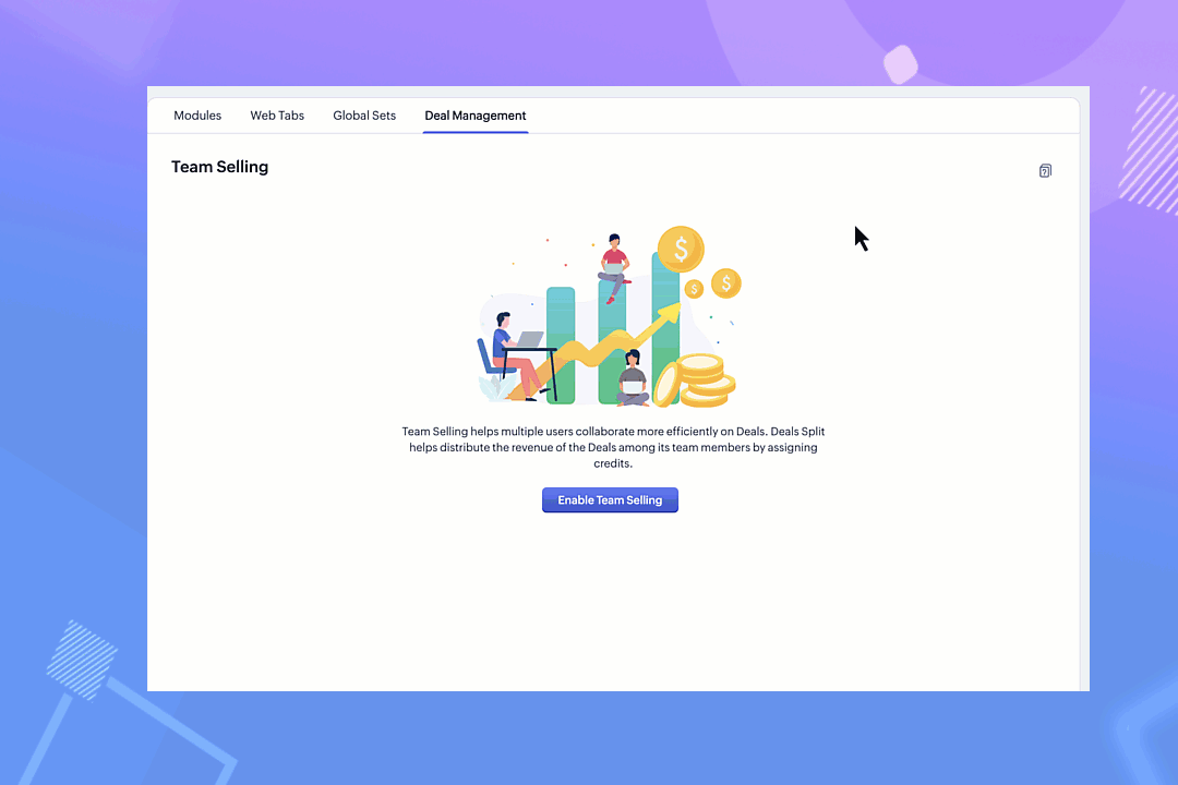 Here again, the contributions of various team members involved in closing a deal are taken into consideration. Deals Split allows you to allocate the revenue that a company gets from a deal proportionally among team members based on their roles and efforts.