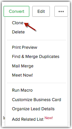 - In the Clone Lead page, modify the required details. (Refer to table)