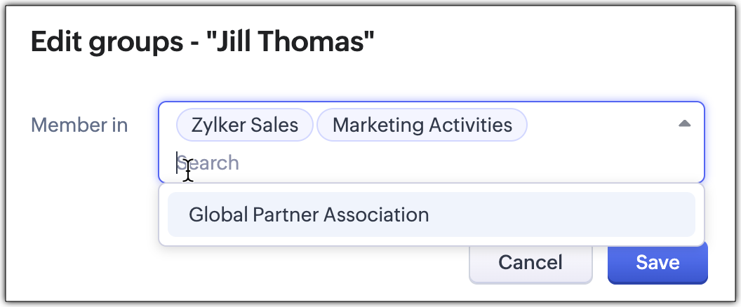 In Zoho CRM, you can create different types of groups (set of users) to manage a set of common records. Groups can be used for setting up team selling, team support, event management by a group of marketing users, etc. Users associated with a particular group can access the records shared to a particular group and perform the necessary operations on the records.
