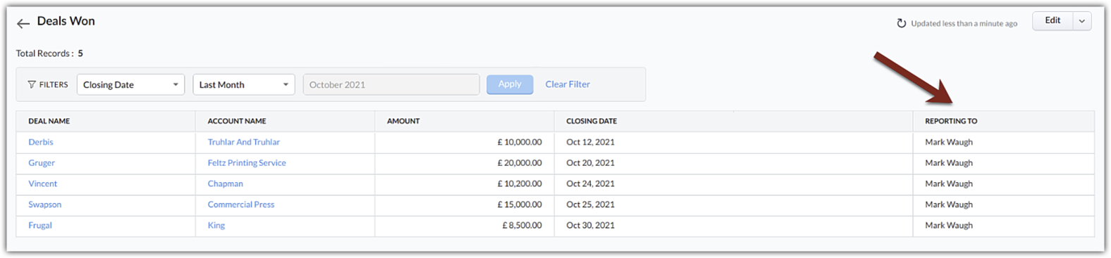 In business, there are innumerable occasions where a superior's approval is required before finalizing an activity. Zoho CRM has enabled you to redirect such activities to a record owner's superior. In the reporting hierarchy, you can choose a record owner's reporting manager to perform these actions. Listed below are few instances where a reporting hierarchy brings significant changes: