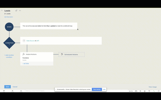 Reason: Imagine a workflow rule is created with the condition "Whenever the Annual revenue > 10,000" that will create a task with high priority assigned to the owner of the deal. The user needs to make edits to the record to keep it up to date. If the scheduled action repeated every time the task was edited, this would create multiple, unnecessary tasks for the user. So, if the workflow rule is repeated, scheduled actions will not be available.