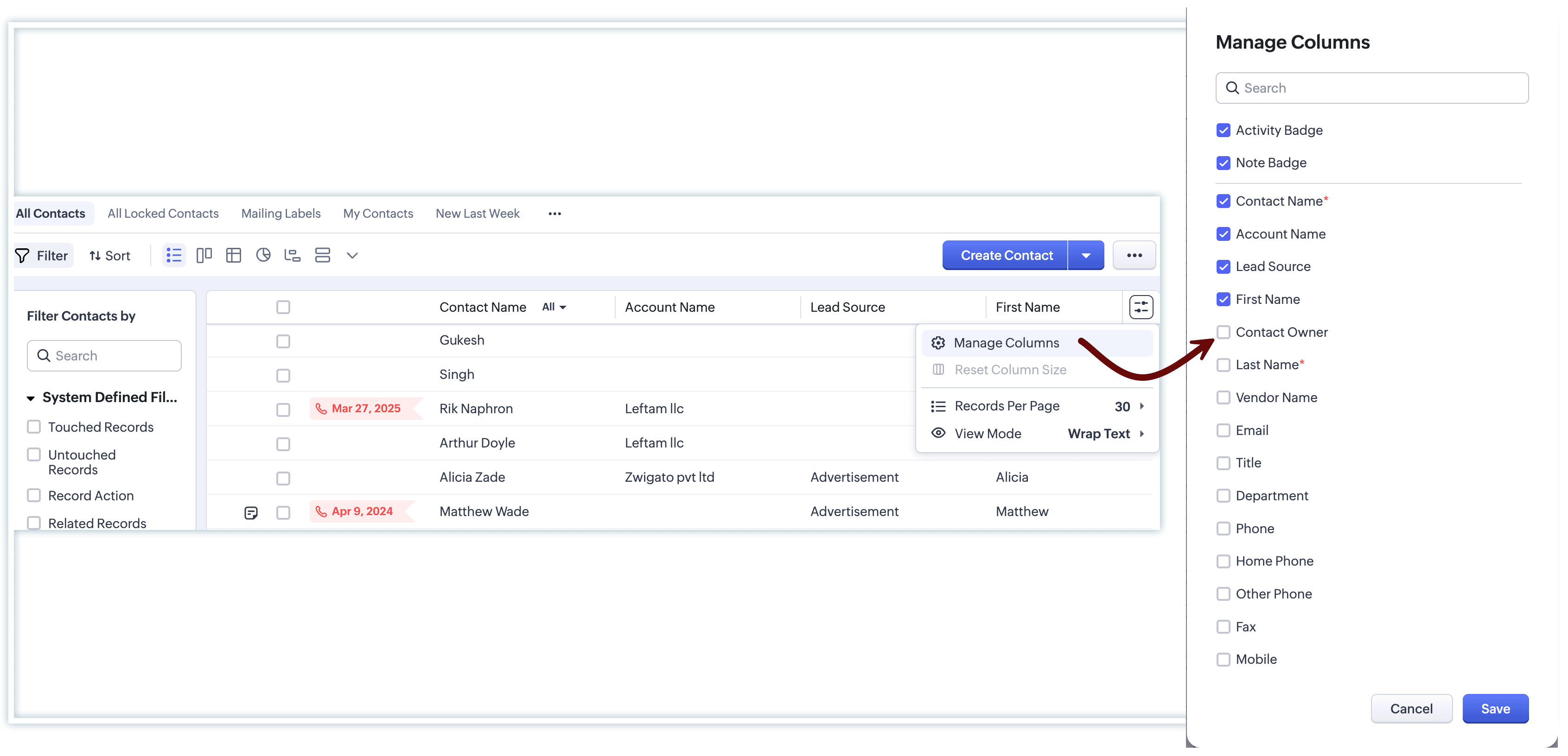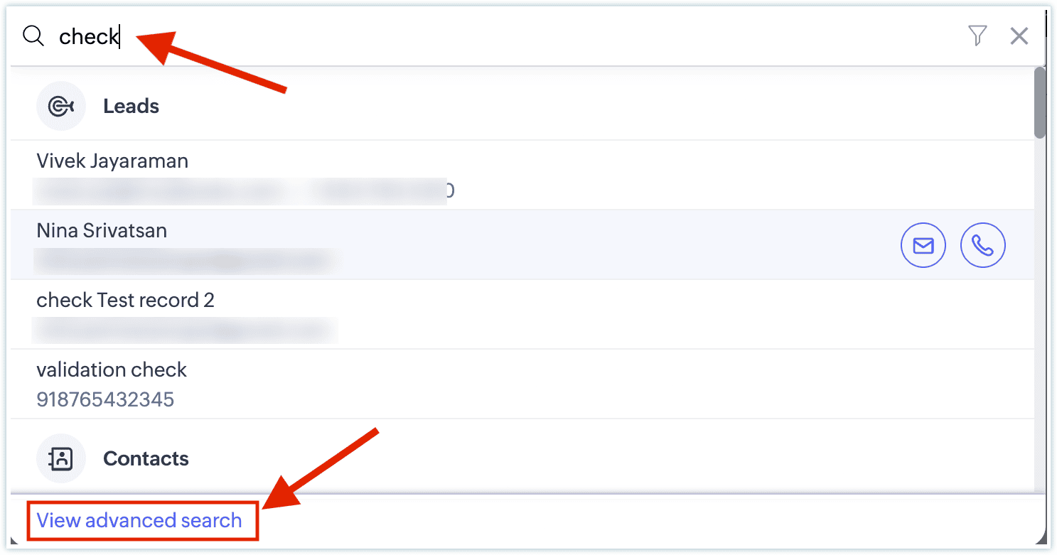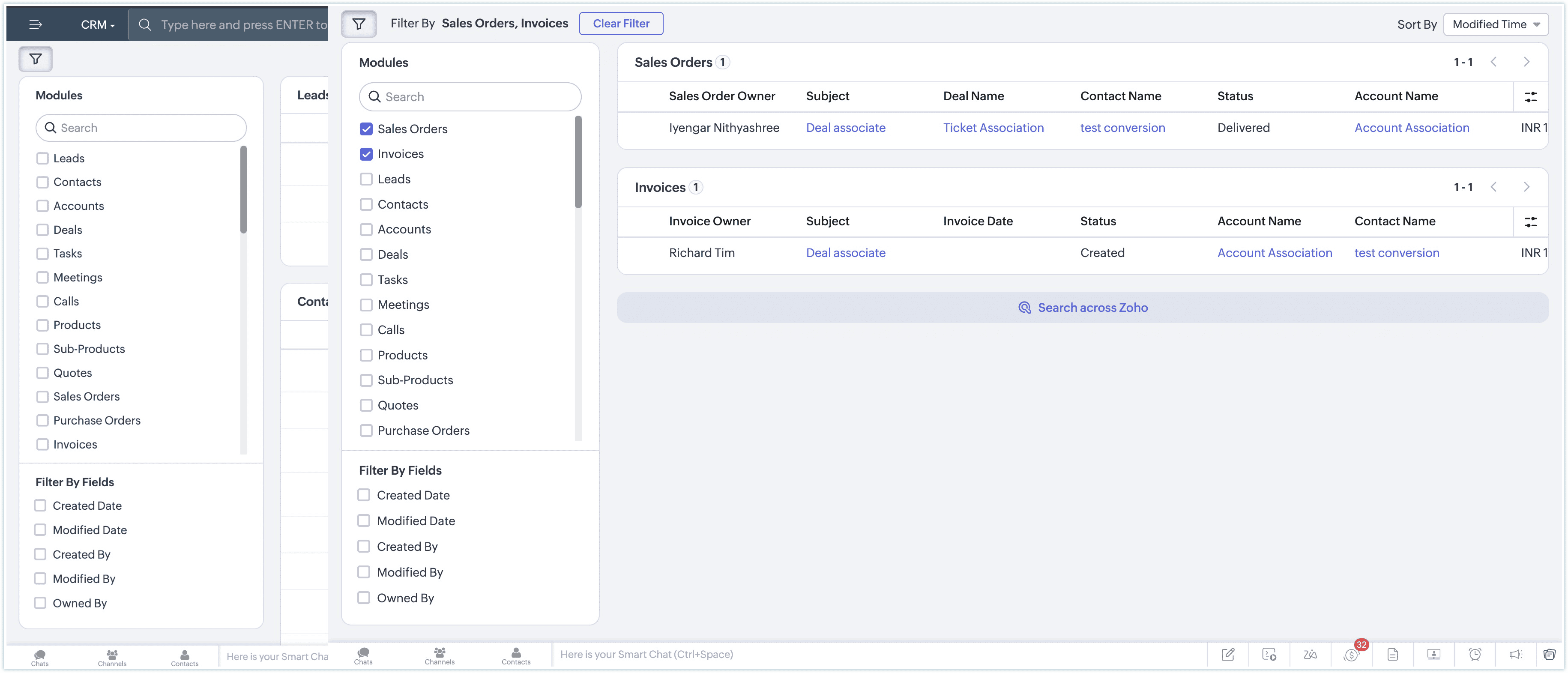 You can also refine the results by applying filters such as Created Date, Modified Date and Time, or Record Owner.