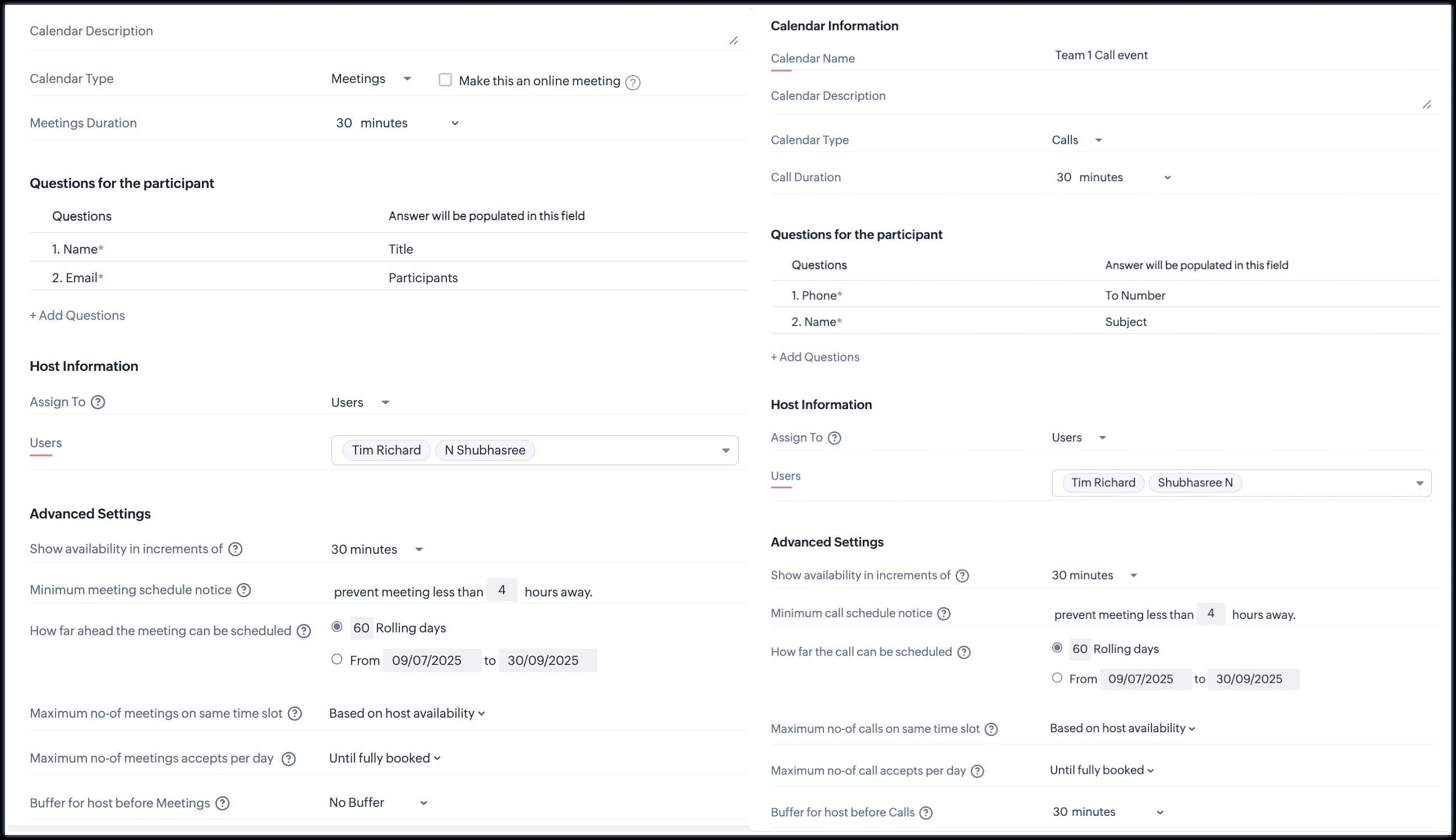 For example, if one team booking is configured with a 30-minute slot without a buffer, and another booking uses a different slot duration with a buffer, the available time may still appear open based on the users assigned through the round robin method. In such cases, the system may allocate the slot based on the user’s availability across these bookings.