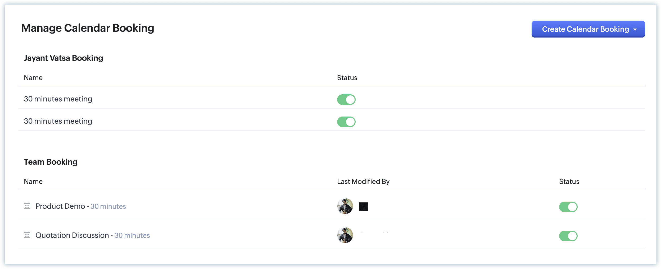 If you do not see the Individual Booking option in the drop-down while creating a booking, check whether you have the required permissions for the Meetings and Calls modules.