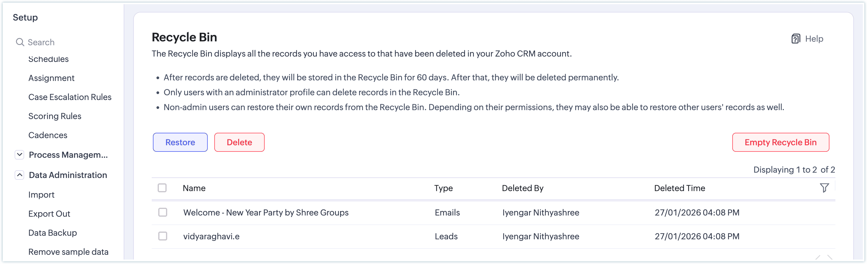 You can verify this by checking the Recycle Bin. Navigate to CRM Setup > Data Administration > Recycle Bin, where you can view the details of when the record was deleted and by whom. From there, you can also choose to restore the record or permanently delete it.