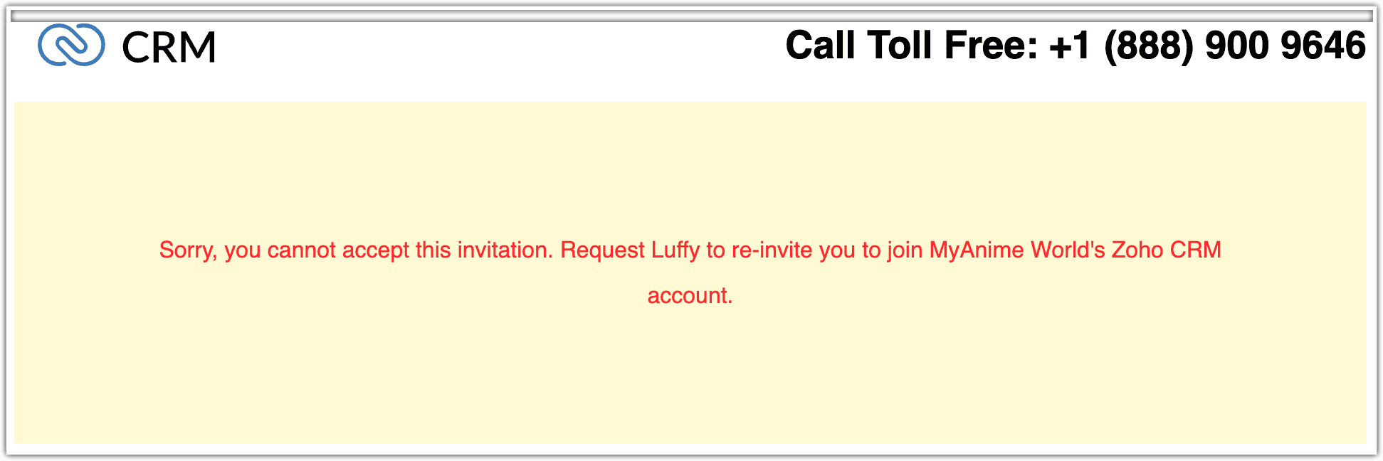 support@zohocrm.com and share the invited user's email address so that our support team can assist you further.