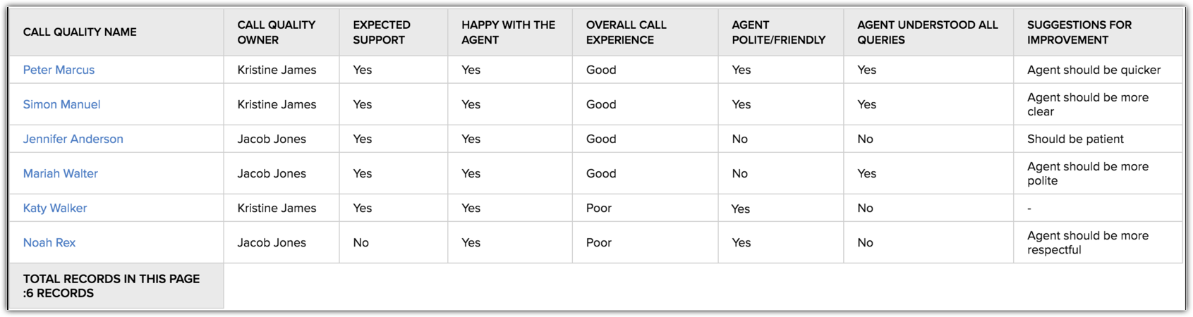 The records will be pushed to the Call Quality module which contains details of the applicants along with their survey responses.