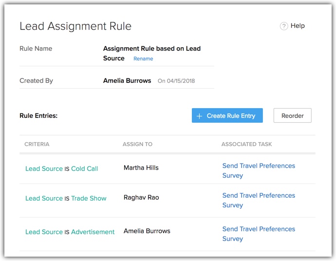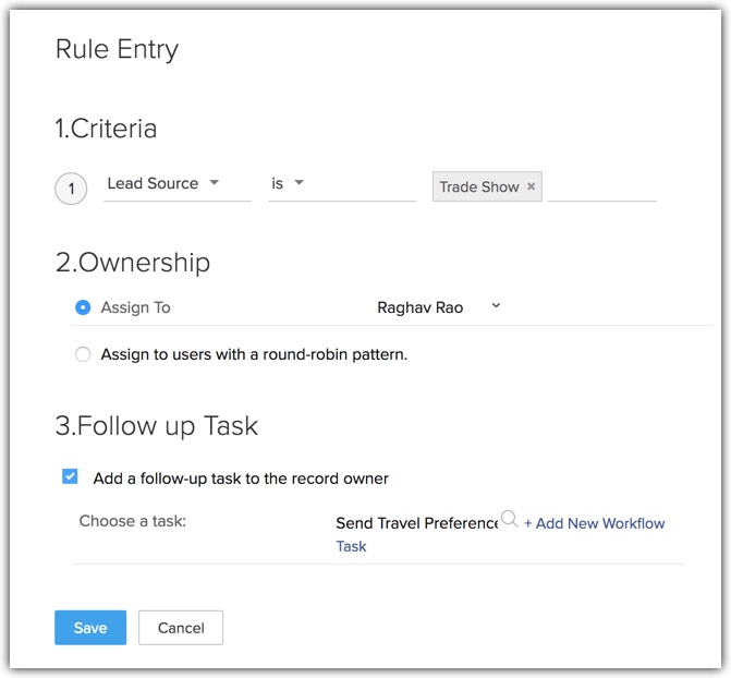 Zylker Moments is a travel agency. They wish to automate assignment of imported leads, based on the following criteria.