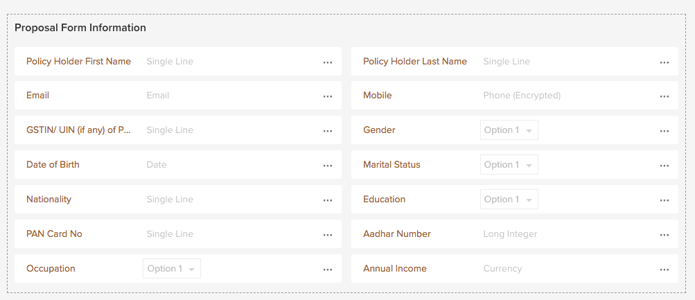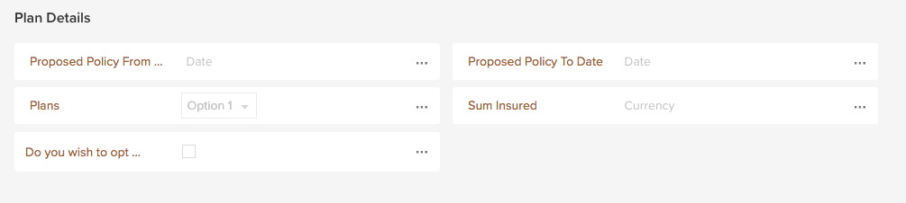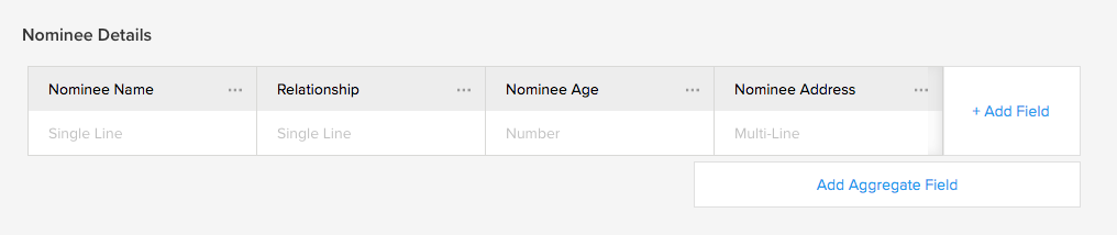 A subform is a secondary form within the primary form. The Nominee Details section will be a subform to collect required details such as name, age, and other identity-related information. While the primary form is still about the insurance policy holder, the subform is a table with details about their nominees.