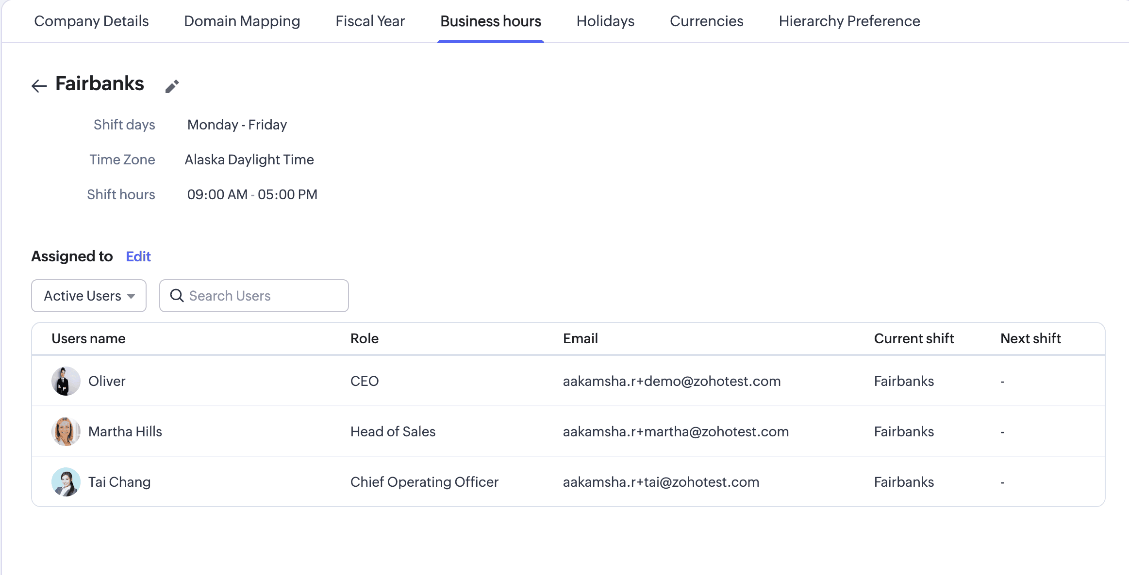 Shift hour - The support team operates at different working hours to cater to the different states in the US. They add the following shift hours according to the time zones of the different cities they operate in: