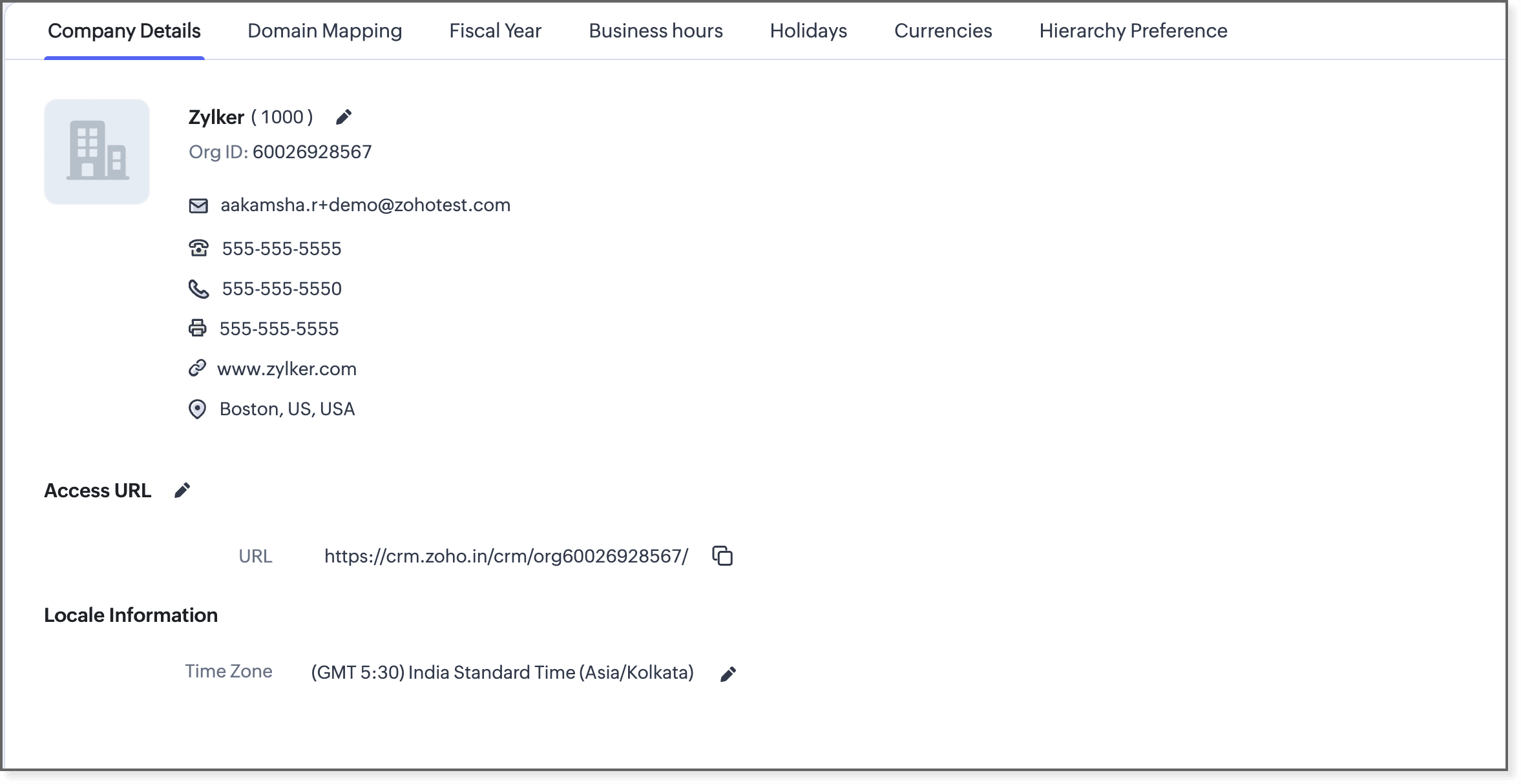 To begin using Zoho CRM, they must first set up the organization details in CRM: