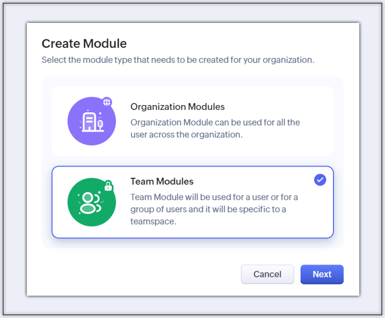 With this update, teams will be able to manage their work and processes in a brand-new kind of module called Team Modules. These modules are specific to their teams and not to the organization as a whole.