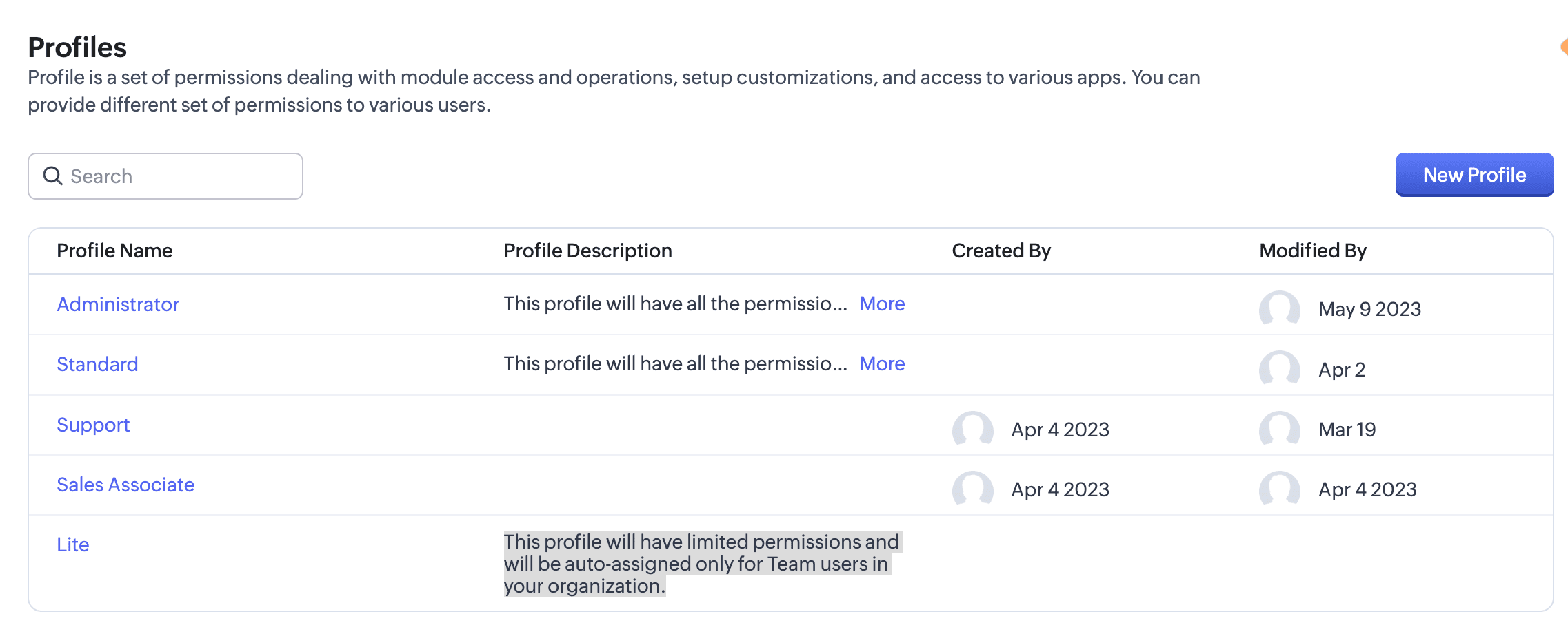 The system will automatically create a clone of the Team User profile. The profile will be named Team_Cloned. All the defined profile permissions will remain as they are. CRM admins can modify the permissions and rename the profile if needed.
